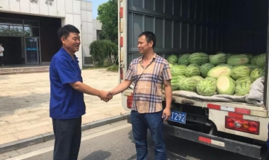 滿載著一大卡車的新鮮甘甜的大西瓜開到了久立。