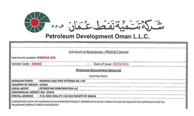 近日,久立管件被正式授予“阿曼石油開(kāi)發(fā)公司(以下簡(jiǎn)稱(chēng)PDO)批準(zhǔn)供應(yīng)商證書(shū)”,批準(zhǔn)包括了奧氏體不銹鋼、雙相鋼,超級(jí)雙相鋼和鎳基合金等材質(zhì)無(wú)縫和焊接管件,